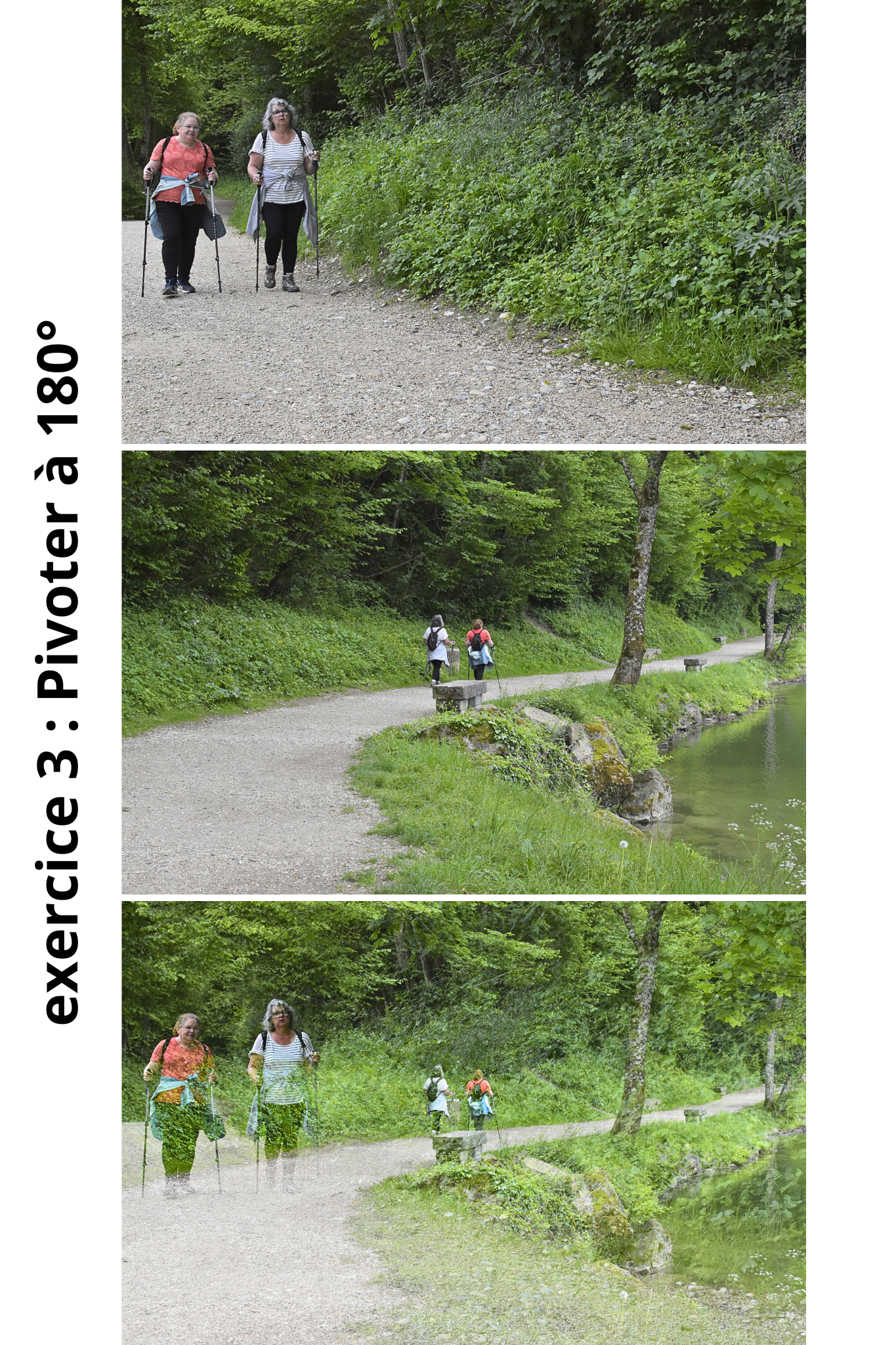 2 photos : sur un chemin (ou à un carrefour en ville), prendre une photo puis pivoter à 180° pour prendre « l’envers du décor »